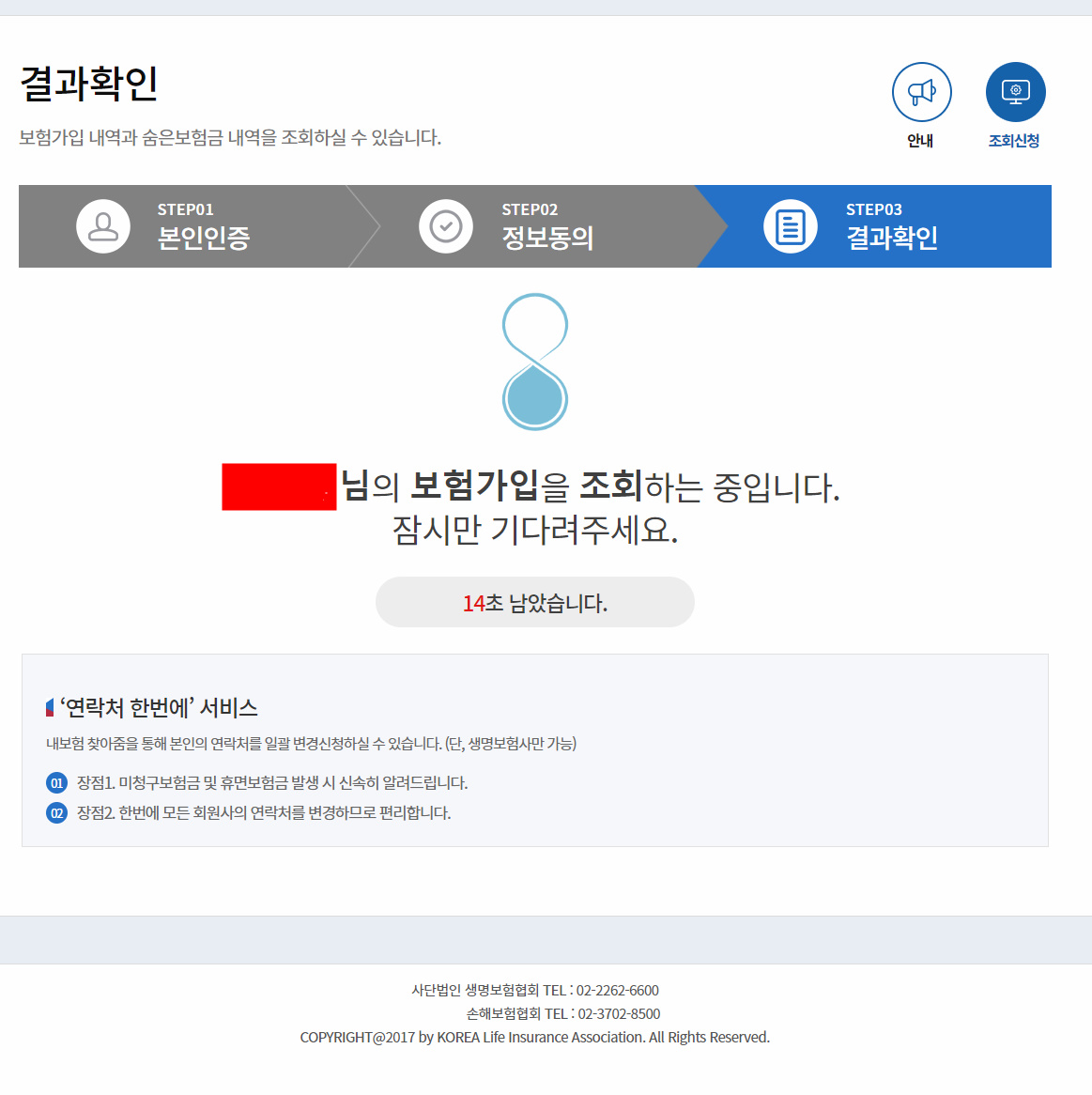 아래의 사진에 나온 방법대로 시작해 보세요. 그리고 가족 분들한테도 공유해서 꼭 보험금을 찾아보시기 바랍니다.